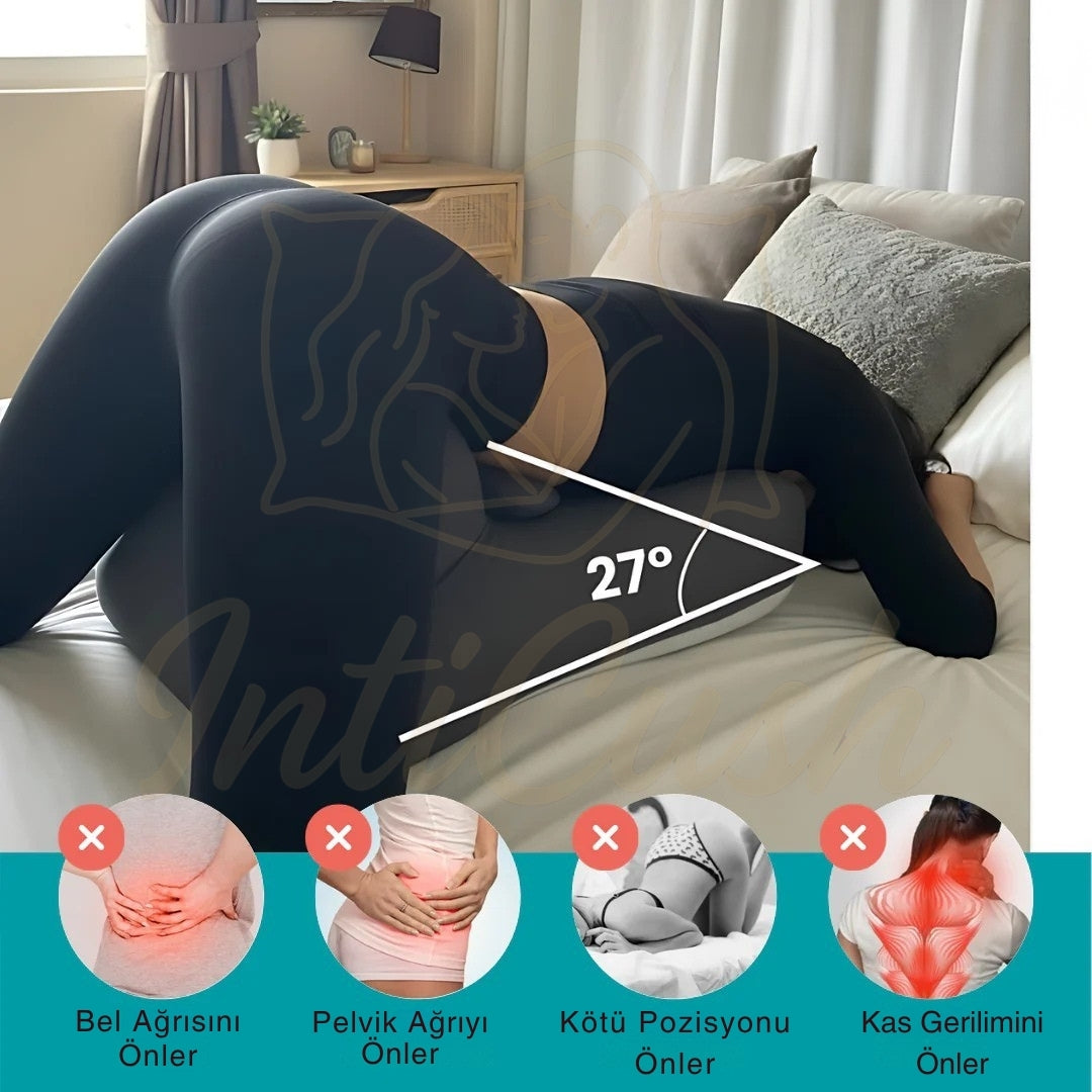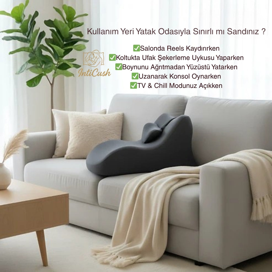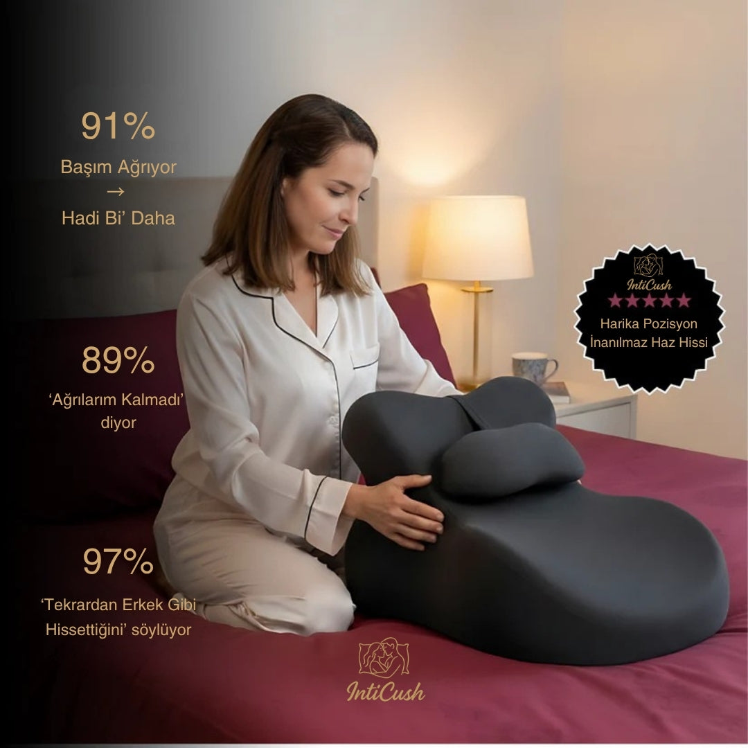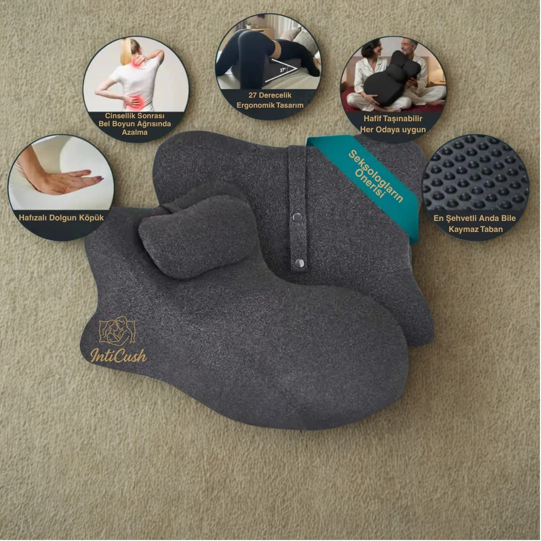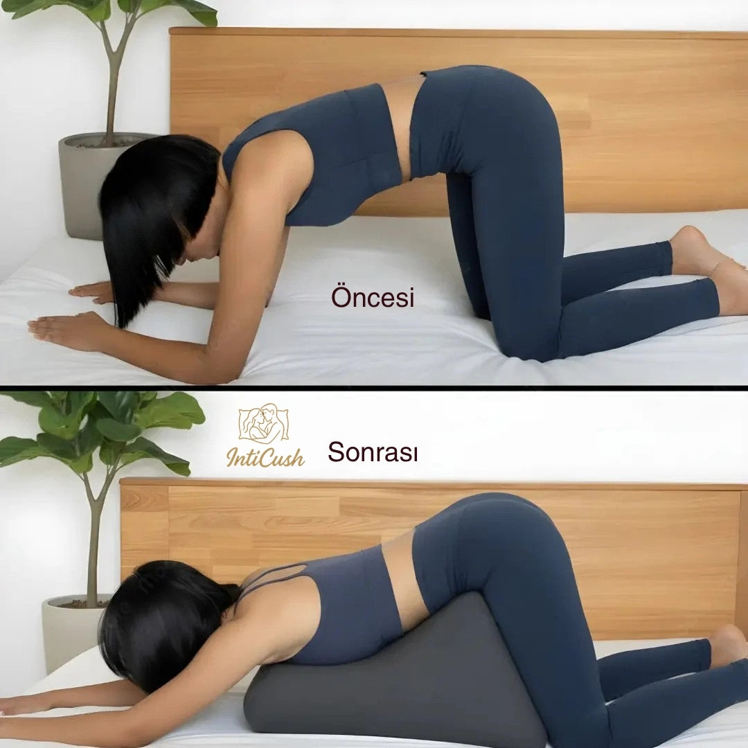 IntiCush, vücudu doğru açıya getirerek yakınlık sırasında konforu artıran ergonomik bir destek yastığıdır.